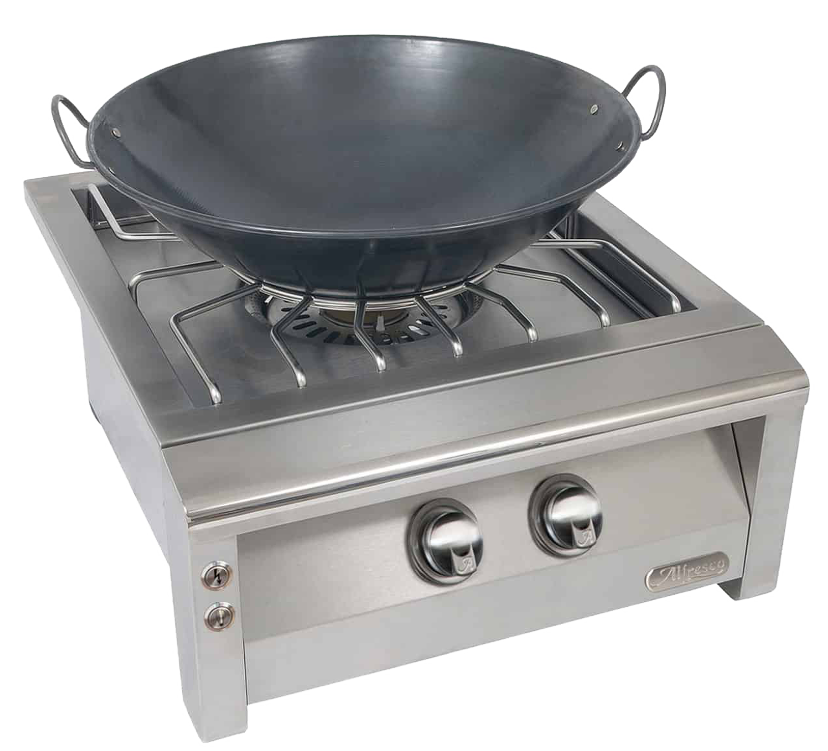 Stainless steel outer tube burner adjusts from 5,000 to 45,000 BTUs
